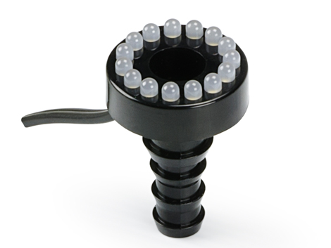 The Aquascape LED Fountain Accent Light gives you a beautiful ring of light at the top of a wide variety of decorative fountains and water features, completely transforming the way your fountain looks at night. The fixture features a powerful 2.5-watt LED light output equivalent to a 10-watt halogen light. The LED Fountain Accent Light is easily installed into a fountain using its barbed hose tail and quick-connect fitting, and the fixture allows water to pass through the center of the light making for a stunning display. This energy-efficient, compact light has a durable design, providing years of trouble-free enjoyment, and its 3000 Kelvin temperature will provide natural-looking white light. Aquascape LED Fountain Accent Lights are completely sealed from water damage and come with a limited five-year full replacement warranty. Aquascape is passionate about the products we produce, providing unique products, designs, and features that stand above the competition.