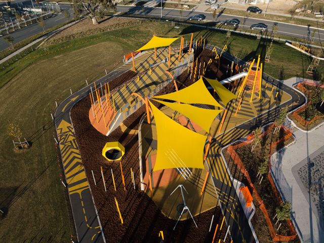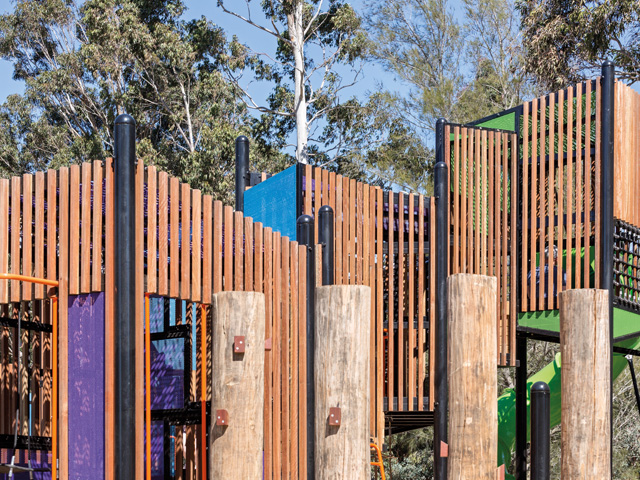 Reflecting a forest-like structure, the playscape at Ringwood Lake Park offers exciting play element...