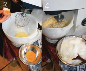 - 4 Separate the egg whites from the yolks and whip the whites at high speed until thick like meringue. Remove and place in a bowl.