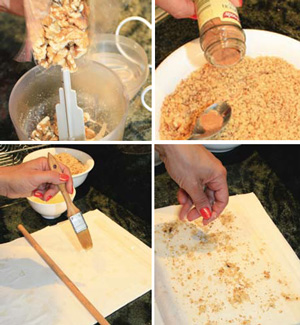 - Crush walnuts using a food processor, then mix in the ground cinnamon.