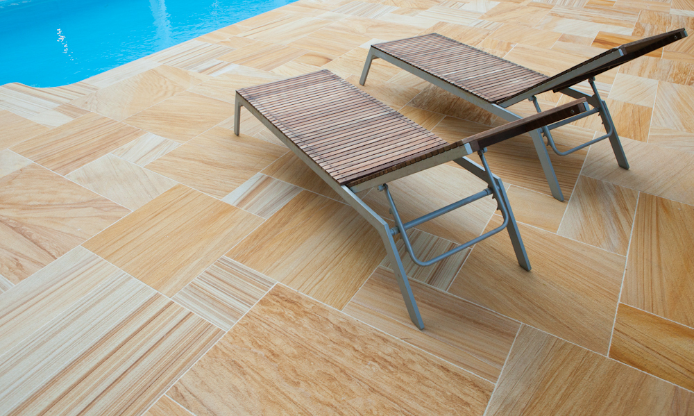 Laticrete 335 Premium Flexible Tile Adhesive and Laticrete PermaColor Grout were used to install the stone and the Dry-Treat 40SK was used to give lasting protection for the sandstone around the salt water pool. Dry-Treat Stain-Proof sealant was applied to protect against oil and water based stains.