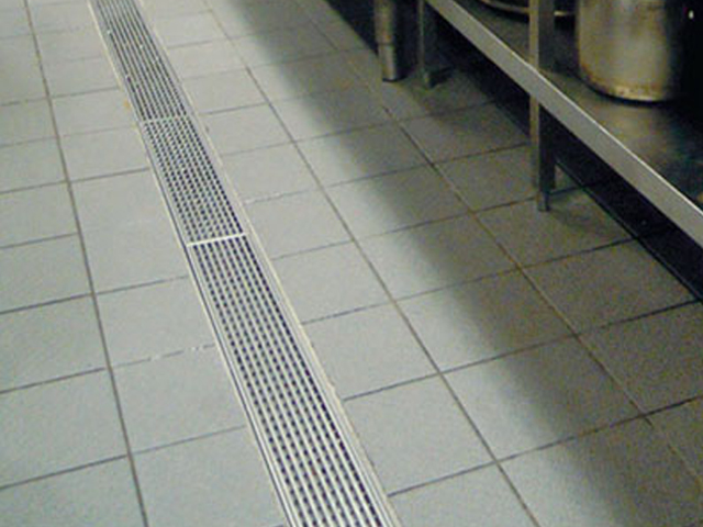 The stainless steel channel has a built-in fall of 1:100 to allow for efficient drainage to the outlets.