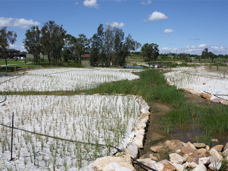 Jute Matting was used to supress weed development, minimise erosion and help establish the native grasses planted.