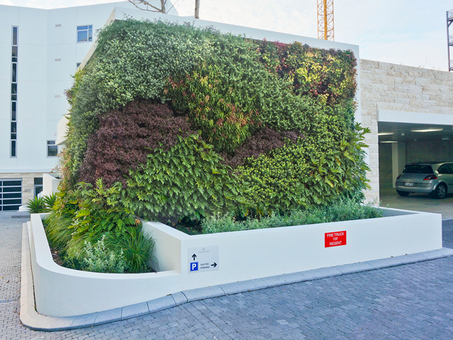 The carpark at Taskers Residence, Fremantle, has been transformed with a green wall vertical garden by Atlantis Aurora. The 40m2 design has turned the facility into a lush design feature that lifts the façade of the residential estate.