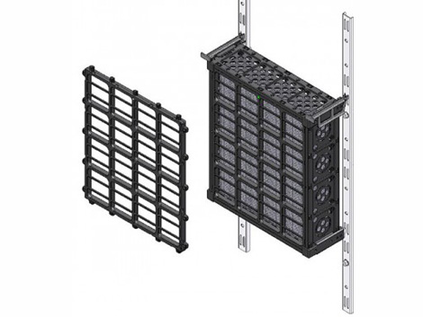The VGM® Green Wall is a modular wall, comprised of vertical modules assembled from high strength lightweight structural panels. The modules hang from pilasters that are bolted to the wall, these are then secured using interlocking snap-on clips.