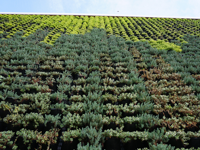 The green wall was installed with Atlantis Gro-Wall 4®, which is designed to attenuate noise, improve air quality and beautify the city. This piece of living art will enhance the experience among visitors, guests and hosts, augmenting their sense of wellbeing and relaxation.