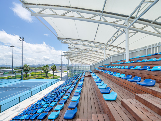 As a way to give back to the neighbourhood, the park connects to buildings on its west side through skybridges, leading in students and sports enthusiasts on a platform made consciously for their use — bringing educational institutions together with the local community in a unique combination of sports and recreational programs tied together with the landscape.