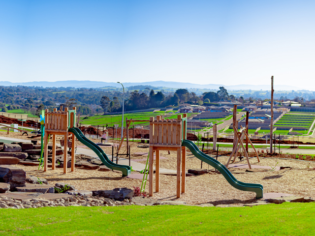 Initial site inspections of the Crownlea development highlighted gorgeous fertile hills and sweeping vistas across the Warragul countryside, providing ample scope for the imagination. The site would include two parks located on prime land. To make the most of the area, Fleming’s Group worked closely with its landscape architects at FLOW Design Studio to harness the site’s natural topography and provide authentic experiences for all visitors.