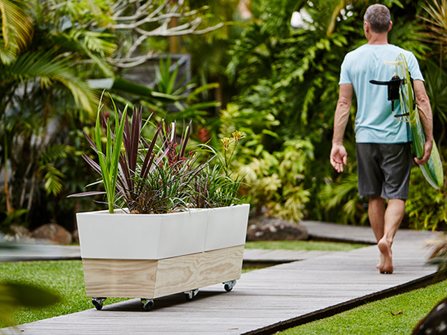 More mobile goodness. Made with beautiful Accoya Pine, the Café Planter has all the advantages of Glowpear’s classic Urban Garden, but on a larger scale – plus it’s portable.