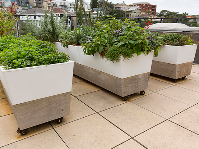 Sturdy, considered construction | The Café Planter’s frame is sustainable Accoya pine, which is both hard wearing and good looking. The remainder is made of injection-moulded HDPE, which is UV and corrosion resistant, BPA-free, food safe and recyclable.