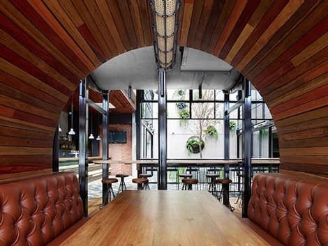 Melbourne-based Techne Architects recently completed the renovation of the facade and concept design of the Prahran Hotel pub. The project included the inventive use of 17 concrete drain pipes, which are now featured in the structure’s facade, interior gardens and dining booths.