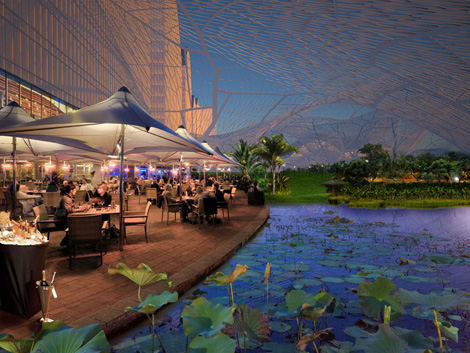 In response to the bad air quality which affects many cities in the developing world, ‘bubbles’ by Orproject proposes an enclosed park, protecting inhabitants and providing a healthy and green city environment.The scheme includes a botanical garden where air is filtered, and temperature and humidity are controlled throughout the year. Surrounding the park, structures are also connected to the air system, housing residences, office space and retail outlets. Additionally, sports and medical facilities can make specific use of the refined oxygen.