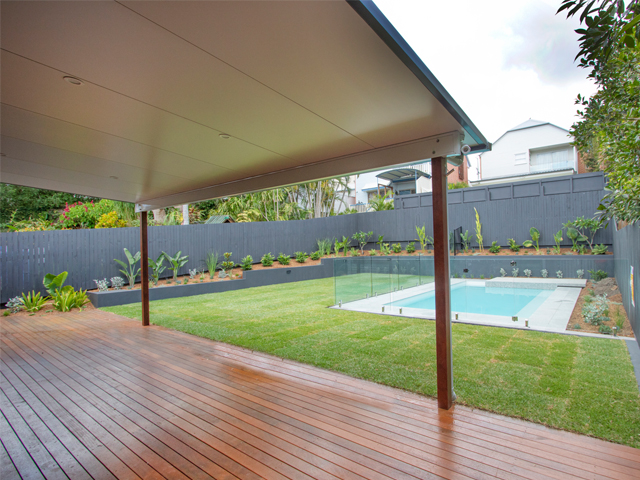 The project also incorporated the installation of a covered timber deck that connects the house to the turf area, and a new LED fitted pool with glass safety screens.
