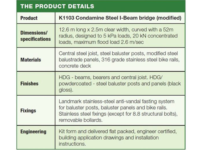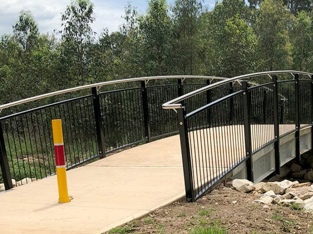 The Condamine Bridge, over Strangers Creek, connects Samantha Riley Drive and Phoenix Avenue and is part of a much wider redevelopment including a range of play equipment, family-friendly facilities and more than two kilometres of pedestrian/cycle paths incorporating three other bridges.