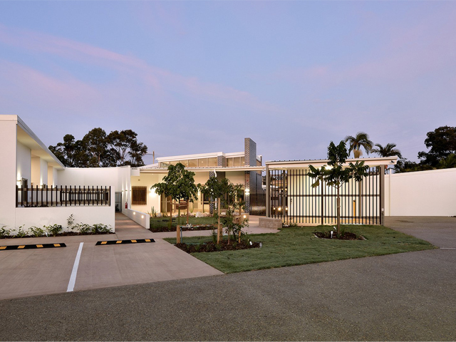 Steel fabrication and installation on YoungCare in Albany Creek. Featuring a steel roofing structure above the courtyard footpath. Powdercoated in Dulux – Champagne Kinetic Pearl.