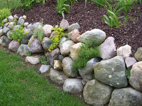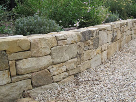Boulder walls are gravity walls, which generally require very little or no special footings. We source local sandstone boulders and machine-select each piece to build a beautiful rustic-style boulder retaining wall.
