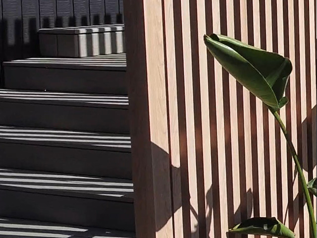 DECO had the perfect product solution for Vos’s landscaping – DecoBatten®. Vos chose 50x50 battens in DECO’s renowned timber-look finish, DecoWood®, which allowed him to achieve the appearance of a timber fence, but without concerns around maintenance, refinishing or deterioration. The marine grade finish is able to withstand sea breezes and salt spray, and will not fade or discolour even in strong seaside sunlight. The soft, warm tones of DecoWood’s® Coastal Spotted Gum™ finish add a homely touch, while perfectly complementing the sense of coastal living exuded by Vos’s home.