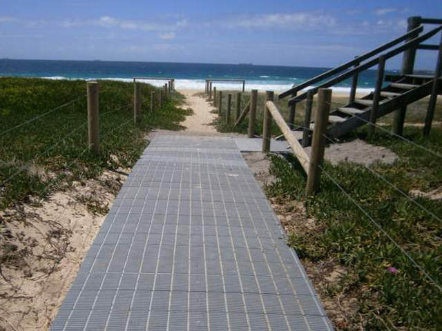 Beach access is now easier than ever at popular Blacksmiths Beach in NSW, particularly for users with reduced mobility since Lake Macquarie Council completed a 60 metre floating boardwalk. Using Enduroplank™ decking secured to recycled-plastic joists, this ‘floating’ construction allows the boardwalk to follow the undulations of the dunes.