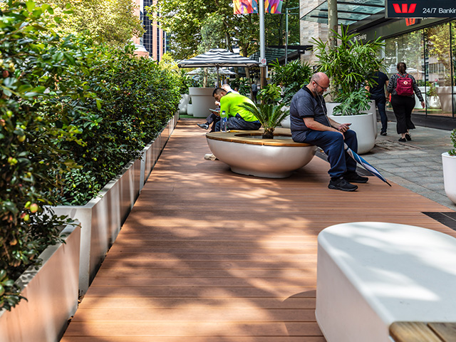 With a long-lasting, beautiful deck pulling the design together, the Miller Street Pop Up Plaza is the perfect relaxing hideaway among the hustle and bustle of modern North Sydney life.