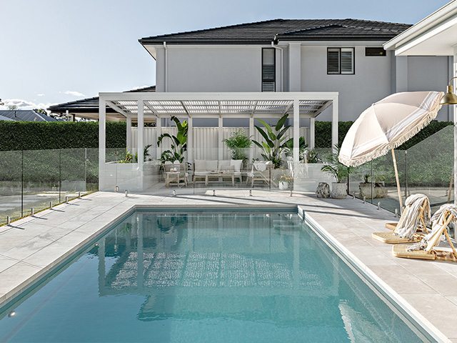 DECO were chosen to provide landscaping products for the pool area, for a low-maintenance yet elegant space that fit in with the country-yet-coastal aesthetic. Featuring a Super Durable™ DecoCoat™ Surf Mist powder coat finish, an eye-catching pergola features DecoBatten® and DecoPost® for a durable, low-maintenance overhead shelter. With a marine grade finish, the pergola is designed to last for years, even by the pool where it will be exposed to chorine, salt spray and moisture. The low-maintenance nature of the finish means it will never need repainting or finishing, for an outdoor sanctuary that will retain its calming vibes and appearance for a long time.