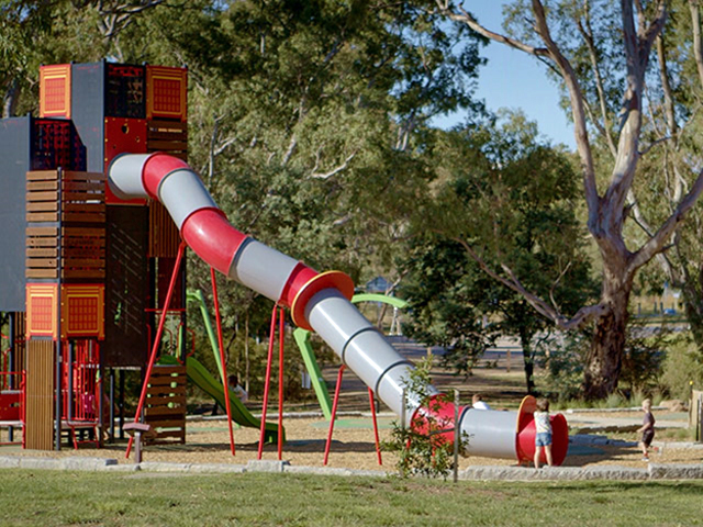 With a six-metre play tower incorporating a thrilling ten-metre slide, the play space at Stanley Park North cannot be missed. The top of the tower provides an excellent viewing platform to enjoy views of Mount Alexander and the surrounding area. The beauty of the tower design is that it is easily accessible by adults as well as children.