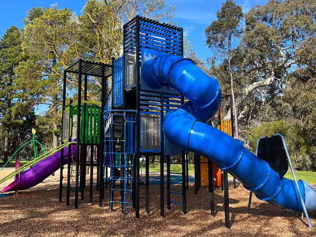 The park were looking for a show-stopping playground tower with height, colour and a lot of active play opportunities. Forpark researched the history of the brand and found that it was named after four caravan park owners who united in 1979, the same year Forpark Australia formed, to create the famous BIG4 brand.