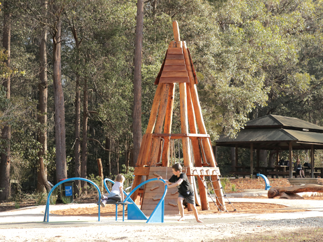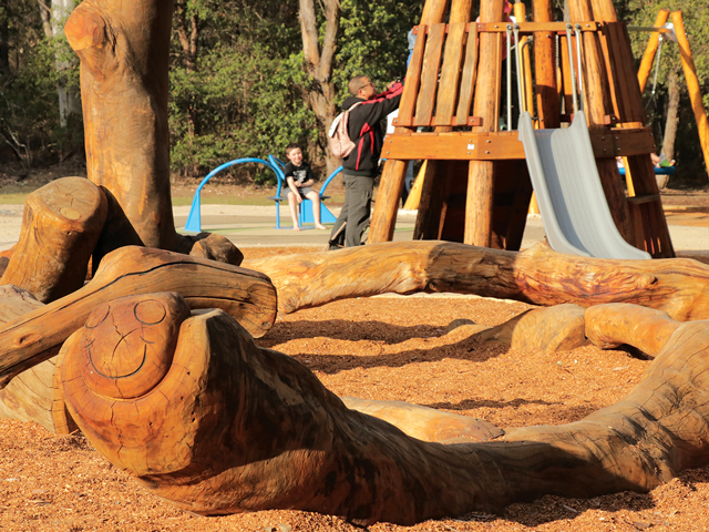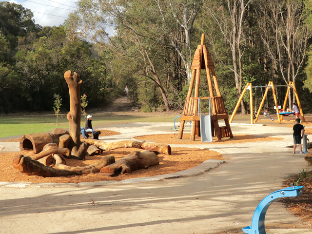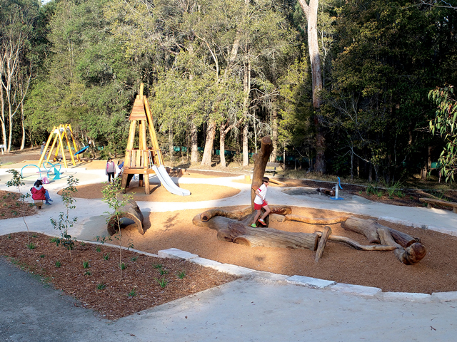 Nature meets play at the Fagan Park Natural Playground in Galston, NSW. The eco-friendly Bushwood elements provide a soothing environment and the inclusive play items ensure all ages and abilities can play together.