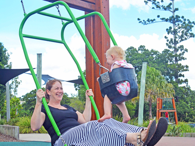 A wide variety of timber and steel swings and seat designs are available, including the Joey Swing Seat: a shared swing experience for an adult and a child. This seat can be retro-fitted onto most compliant swing frames.