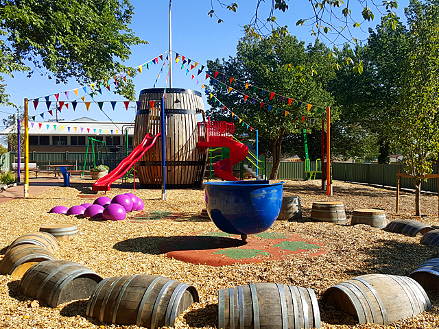 The Heathcote playground features timber themed equipment from Allplay that ties in with the surrounding bush landscape.