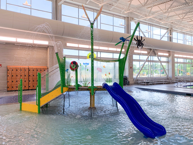 The new Activity Tower brings a whole new personality to the new 21,000 square foot aquatics centre on North Laburnum Avenue. The Grassland-themed Activity Tower by Waterplay provides children with easy-to-reach play elements that create limitless fun for all levels.