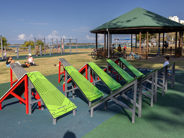 Quality and durability are paramount. To withstand the test of time and the harsh coastal elements, marine-grade materials were meticulously selected for the construction of this obstacle course. This ensures the equipment will continue to be an asset for the Gold Coast community for years to come.