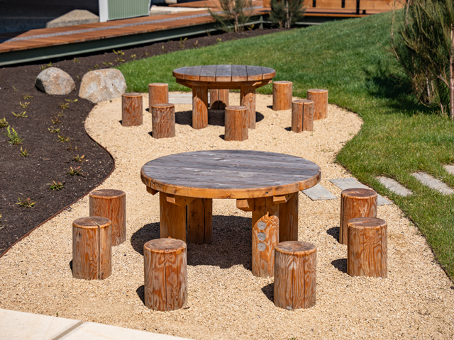 Working in collaboration with its partner Richter Spielgeräte, Urbania supplied a climbing trunk, sand hoist, climbing net, a toddlers table and much more. SBLA chose Richter Spielgeräte equipment due to its simplicity of materials and play value. Designed to activate the senses, Richter Spielgeräte equipment tests children's developing bodies, accomodating for all abilities and ages. All the timber play equipment is handcrafted using Larch timber, a long lasting, rot-resistant building material, untreated to reduce exposure to chemicals and requiring minimal upkeep.