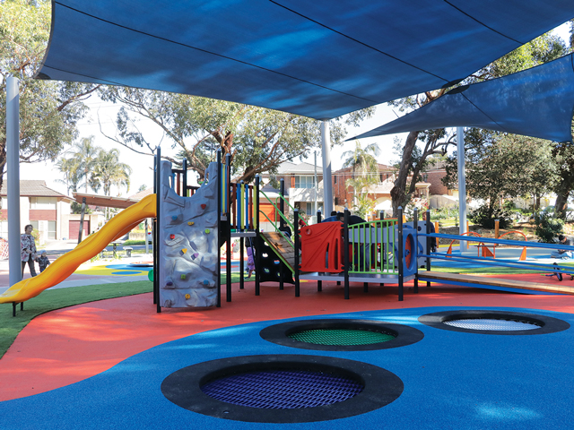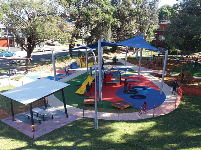 The new playground at Meade Park, Allawah, is a colourful and accessible community hub that is an investment by Georges River Council into the welfare of the children and families in the area.