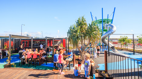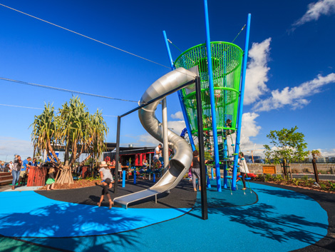 Ocean designed rubber softfall, retractable shade sails and a pop up cafe also accompany the popular playspace, ensuring a unique destination the whole family will enjoy.