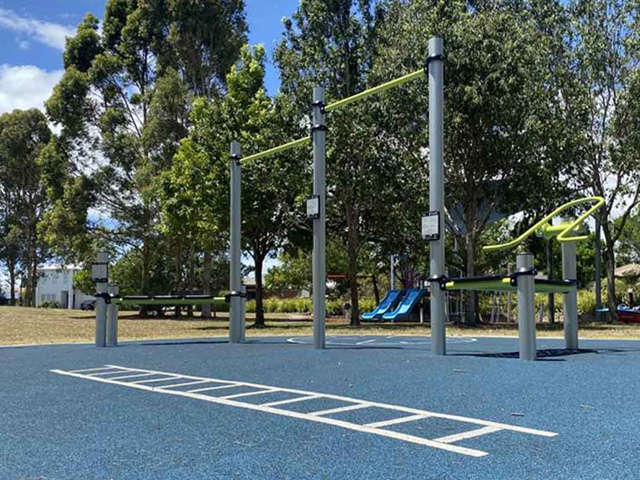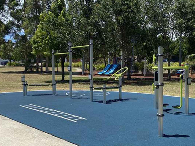 To enhance the walking path, Moreton Bay Regional Council sought to create a fitness node. ParkFit were contracted to create remarkable design for the street park. This bright and functional node comprised Plyo Box Jumps, 2 x Chin Up Bars, Bench Press, Aerobic Walker, 2 x Resistance Hook stacks, Painted Fitness Compass, and a Painted Fitness Ladder.