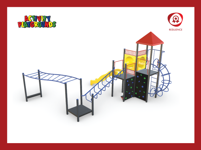 Combined plastic and steel mediums allow for complex and rewarding designs. The Resilience range features pieces that encourage collaboration, while challenging children of all ages to build their self-confidence and resilience.