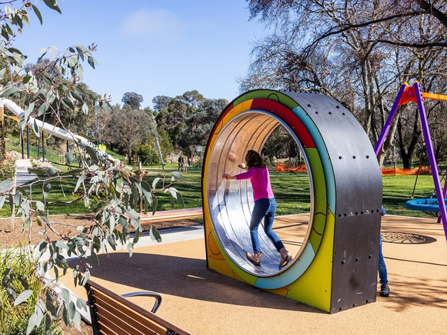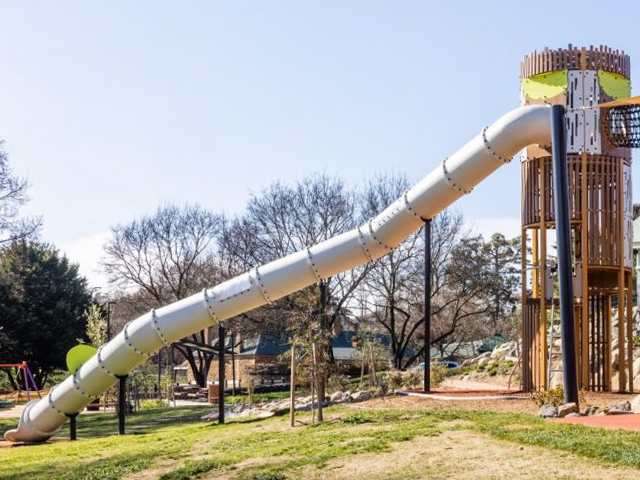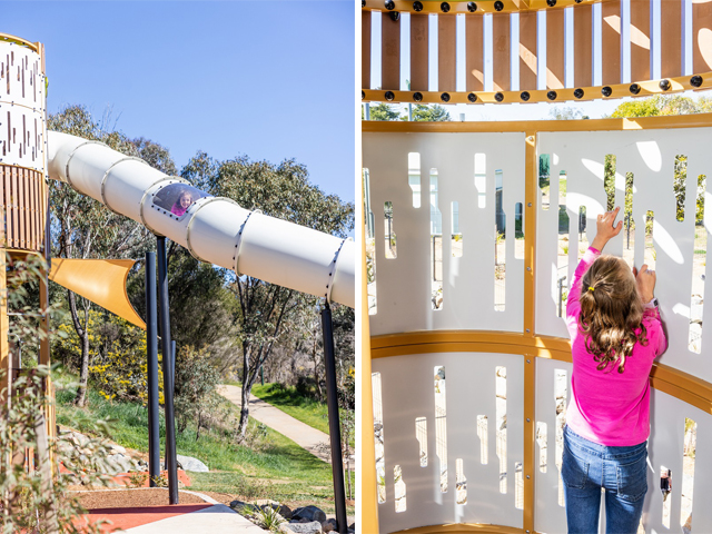 Designed with the help of the Yass Valley community, the adventure playspace received $2 million in grant funding in 2021 under the NSW Public Spaces Legacy Program. The new adventure playground replaces the former playground which had been damaged during the floods of 2022, and had come to the end of its safe asset life.