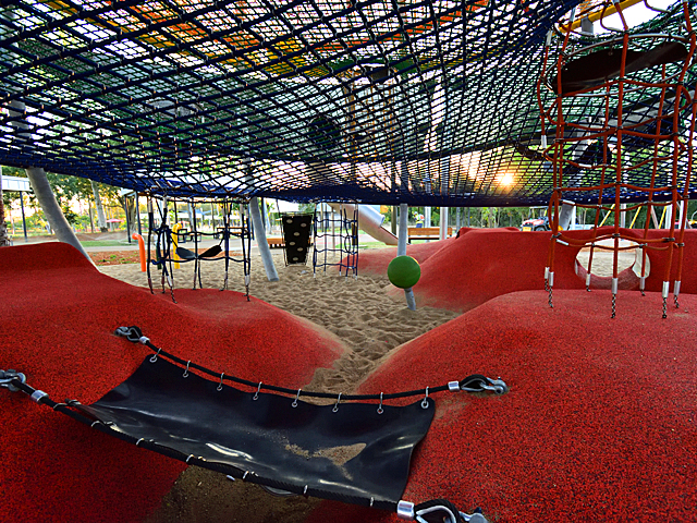 Kershaw Gardens in Rockhampton is now home to the world-first Super Sphere. Standing at over nine-metres high, this incredible play piece is visible from the Bruce Highway. Renamed as ‘Wyatt’s Wonder Web’ the play piece was originally designed for New York’s Central Park and is a world-first for playground technology. The colourful five-level piece is bursting with play value, with four slides at varying heights and tunnels running underneath the sphere. Kids can make their way up the Sphere through various obstacles including ropes, ladders, swings and hammocks.