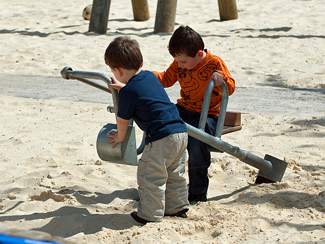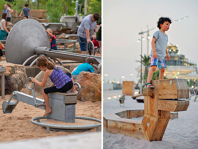 Sand play from Richter Spielgerate allows for kids to play with mock construction equipment, operating ‘cranes’, filling pipes with sand, digging ditches with an ‘excavator’ and more.