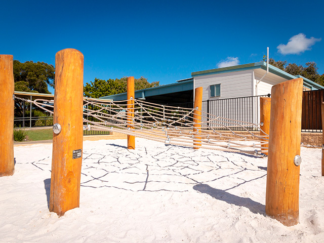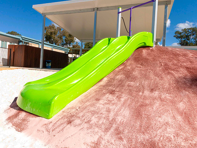 The play area was upgraded with a 1200mm high double wide slide perched on a concrete-reinforced mound covered with CSBR rubber, as well as a Natural Spidergon climbing structure which offers opportunities for motor skill development and socialisation, and creates a space for imaginative play.