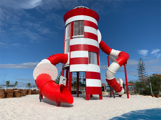 With the area being visible from all roads leading into the Amberton Beach foreshore precinct, one of the main beach access points and a focal point for the community, Stockland wanted to ensure the centrepiece of the playspace stood as a beacon (no pun intended) for the area. Modelling the tower on a traditional lighthouse helped WillPlay to meet the client’s brief and provide a playspace with a truly spectacular structure that is hard to resist, or miss!