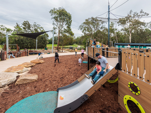 The new 10,000sqm fenced playground features a Proludic 15m-long Galleon ship, as well as a shaded area for younger children, swings, and picnic shelters with barbecues.