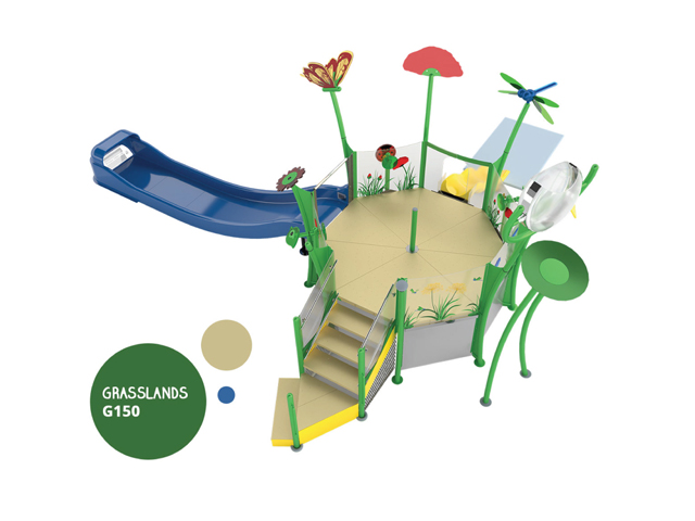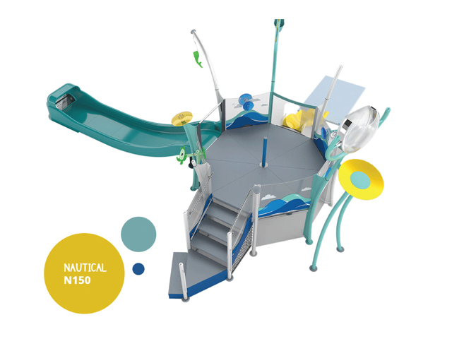 Neatly packed mini play structures with multiple spray encounters and design themes.