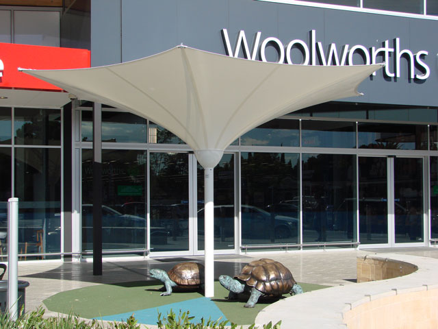 As part of the new Woolworths Shopping Centre at Walkerville, Architects Brown Falconer required an eye-catching and sculptural shade feature to enhance the main entrance forefront.