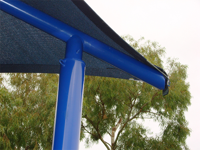 Shadeports are custom-made to suit the application or site and can be manufactured in a variety of sizes, ranging from the smallest Shadeport to cover a single picnic bench, right up to a huge six-post long ridge structure, designed to cover a jumping pillow. The height of the structure is also site-specific and manufactured to suit. Post heights can range from around 2.5 metres, typically used at childcare centres where the low height allows for maximum shade, right up to 4 metres and over when shading high play equipment on council reserves where increased clearances may be required.