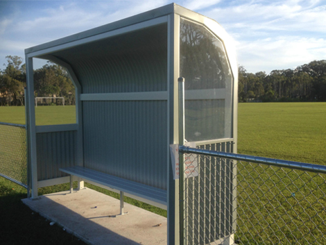 Steel Post & Rails sports field dugouts are custom made and tailored to suit required coverage area, number of persons seated, required cladding (clear optional) and windows. Our dugouts can be designed to be mobile on grass-friendly wheels or with lifting lugs or provision for mechanical lifting for ease of movement around your facility. These particular dugouts were designed and delivered to the Australian Sports Commission for their Canberra Hockey Facility, complete with lifting lugs for ease of movement.
