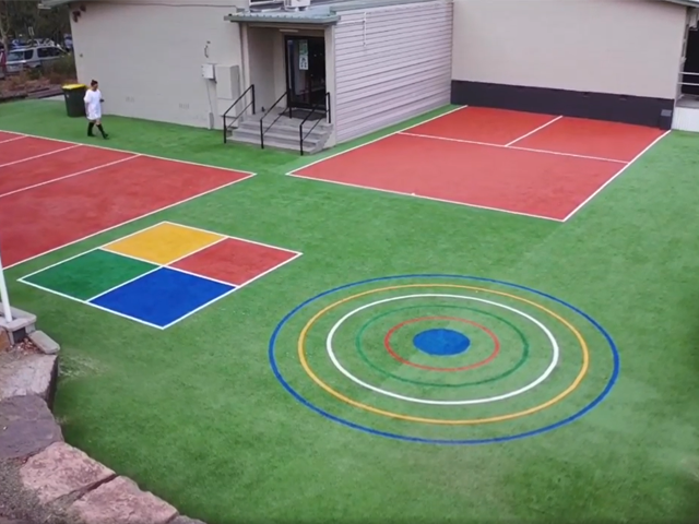 Kangaroo Ground Primary School have revamped their existing asphalt area with this new synthetic volleyball court, half tennis court and throwing target. The project by Sportscapes Constructions required a dust overlay to rectify the uneven asphalt, Naplock edging to secure the edges and Tiger Turf Asia Pacific's Tournament 1000 was used for the playing surface.