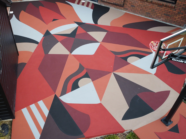 What was once an unused space in the backyard is now a vibrant Laykold multisport court, brought to life by Prestige Sports Surfaces. The design features a bold, custom lion — the vision of an eight-year-old boy inspired by Laykold art courts from around the world. With colours like orange, red, burgundy, and custom chocolate, local designer Paganne Smith ensured it blended with the home’s palette. Using laser tech, grid lines, and over two kilometres of masking tape, the intricate artwork was precisely executed. The result? A stunning, durable court perfect for basketball, pickleball, and tennis — built for fun, function, and a proud young boy.