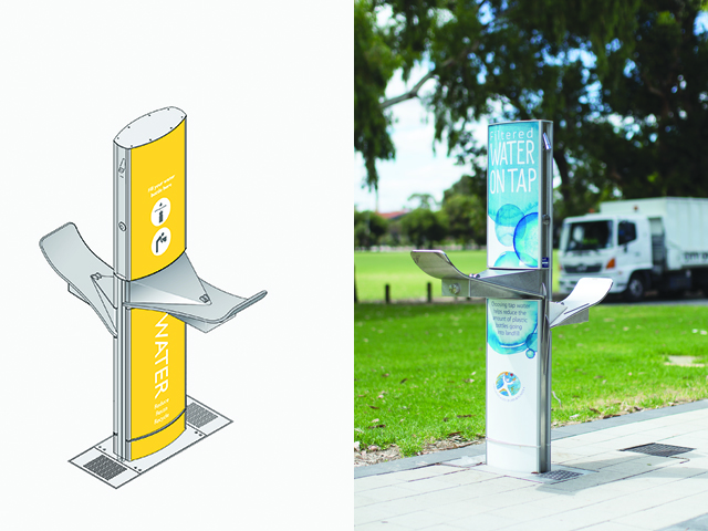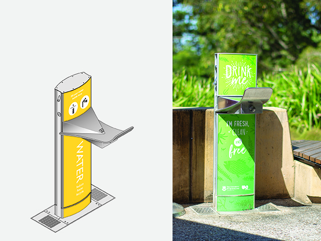 The Aquafil FlexiFountain Series is the signature suite of drinking fountain and water bottle refill stations by CIVIQ, designed for public environments. The drinking water stations are compact and hard-wearing for long-lasting performance in outdoor public spaces. They are available in three heights: 1200mm, 1500mm and 2100mm.