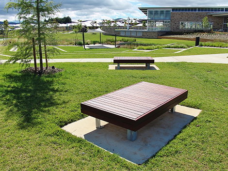 The landscaped facilities are frequented by picnicking families through to exercise fanatics who love the extent of outdoor space. botton + gardiner’s Prospect range of furniture was an ideal candidate and its angular forms provided seamless integration with existing site features.